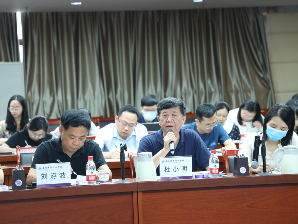 杜小明作总结讲话,他讲到这一阶段各评建组、各部门、各学院和广大教职工上下一心,团结奋战,为学校评建工作付出了极大的努力和辛苦,取得了显著成效。学校通过月例会制度定期交流情况、明确任务目标,对持续推进以评促改、以评促建起到了积极作用;评建工作办公室统筹协调,各专项建设工作组坚持问题导向,咬定任务、力补短板,评建工作取得了明显进展;专家深度指导、找准问题、推进整改,对重在建设起到了引领促进作用。大家学习把握政策,积极努力工作,虚心向专家学习的工作态度和良好作风值得发扬。对下一步评建工作他讲了三点意见:首先,要进一步强化责任使命意识,坚持深入研究并认真落实评估政策,研究吸纳专家的正确意见;其次,要完善各项政策制度,明确完成的时间节点,硬指标和硬任务要限期完成;第三,要加强统筹协调,有关部门既要理清责任边界,又要加强协商协调,同时还要有大局意识,以指标要求和职责任务为原则,及时解决处理好矛盾问题,齐心协力,通力合作,共同完成好评建任务。