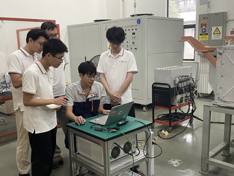本网讯(记者 汤文俊)5月19日至5月28日,绿智交通产业学院组织先锋班学生赴广州神铁牵引设备有限公司开展电力电子技术实操技能训练实践教学活动。此次实训为122cc太阳集成游戏2022级学生量身打造,突破传统的校企合作授课模式,结合神铁牵引的工程化项目,在产业级试验室内直接参与企业真实设备调试,实现了“课堂进车间、作业即生产”的深度产教融合。