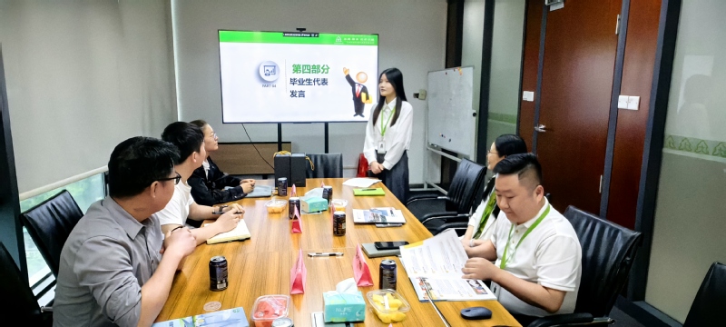 座谈交流现场,2024届毕业生林佳年作为优秀员工代表,分享了她的成长历程。她感慨地说,从校园到职场,从青涩新人到能够独当一面,每一步成长都深深烙印着学校培养的印记,也离不开大参林这个大家庭的用心栽培。彭广智谈到,“大参林需要的就是这样上手快、后劲足的复合型人才。林佳年的成长轨迹,正是对我们‘以战代练’人才培养模式的最好验证。”