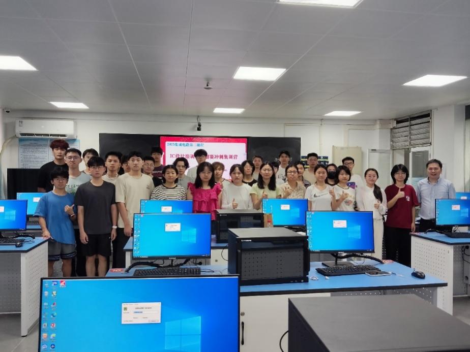 本网讯(记者 董萌)为提升学生集成电路设计能力,助力备战中国集成电路创新创业大赛(集创赛),5月2日至3日,在B8-501,电子信息工程学院/通信工程学院成功举办了“IC设计培训班暨集创赛冲刺集训营”。此次活动特邀知名上市芯片设计公司专家、模拟集成电路设计工程师何晓檬担任主讲,校内30余名师生参加本次集训营活动。