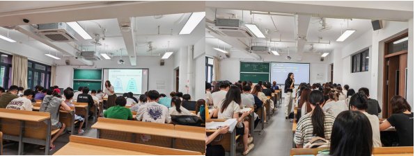 行业案例分析,促课程思政深度融合。童智老师的《服务创新实践》课堂上,童智老师引导学生深入剖析医疗服务行业的特征,精准把握顾客需求,并巧妙运用服务管理理论工具,开展服务系统设计创新训练。学生们积极投入,通过手绘海报、原创视频、PPT等载体,展示了老人和残障人士陪诊服务、边远山区无人机药物精准配送服务等。这些项目不仅展现了学生对专业知识的灵活运用,而且培养了同学们的社会担当意识,为课程思政建设提供了新的思路与实践探索。戴昆鹤老师结合之前在银行工作的经历解释经济学中的现象,通过分析货币制度对经济稳定与发展的作用,引导学生认识到金融体系的稳健运行对于国家经济安全的重要性,培养学生的经济安全意识与社会责任感。