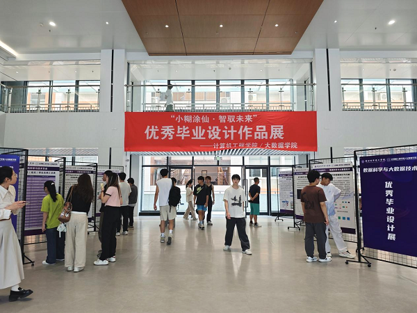 本网讯(记者 李浩亮)为充分展示学院毕业生毕业设计成果,促进师生交流,深化产教融合,3月25日下午,计算机工程学院/大数据学院在A11教学楼一层中央展厅,举办“小糊涂仙·智驭未来”系列活动之优秀毕业设计作品展。学院院长奚建清、党总支书记张彩霞、副院长蔡沂及特邀嘉宾广州市轨道交通产业联盟项目经理汤文俊、产业研究院高级总监马世江出席活动,现场200余名师生共同参与。