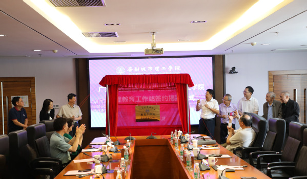 本网讯(记者 许晗星)5月14日上午,广东老教授协会广州城市理工学院教育工作站签约揭牌仪式在学校行政楼201会议室隆重举行。广东老教授协会执行会长彭新一,常务副会长刘洁生、汤耀平、侯德富;学校党委书记杜小明,副校长周诗瑶、刘洊波;广东老教授协会相关人员、学校有关部门负责人出席仪式。