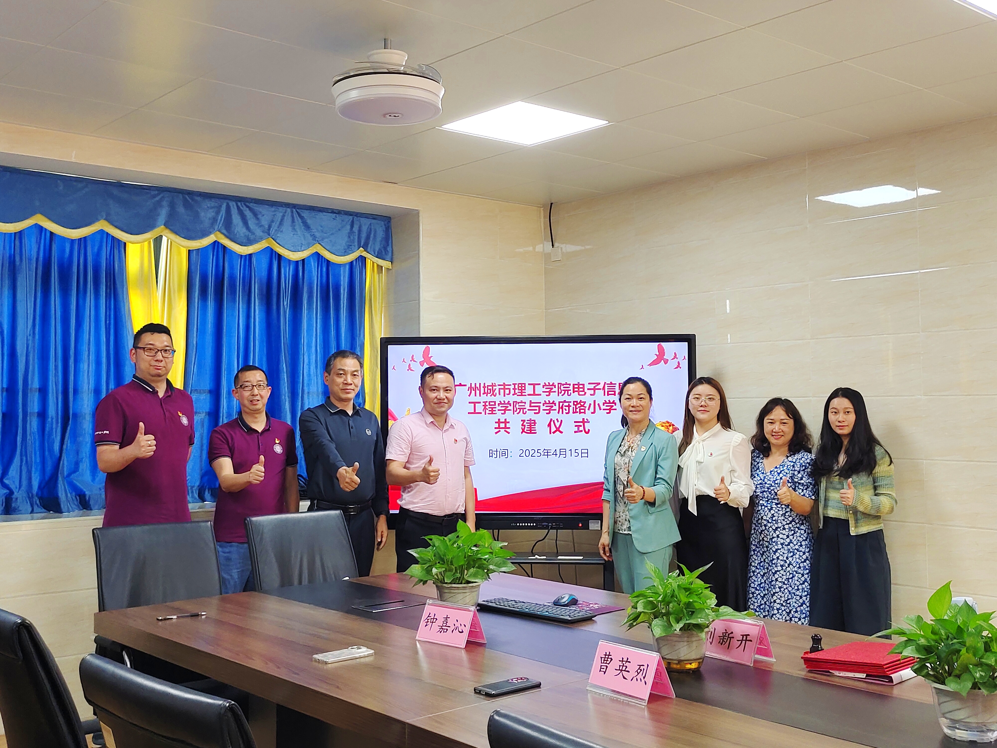 本网讯(记者 周丽颖)为深化实践育人体系建设,响应为党育人、为国育才的号召,4月16日下午,电子信息工程学院党总支与广州市花都区学府路小学举行党组织结对共建、志愿服务实践基地共建签约仪式。电子信息工程学院/通信工程学院常务副书记罗自力、副院长曹英烈、学院团委相关负责人、学校无线电测向队教练等一行受到学府路小学书记、校长钟丽华,总务处、德育处主要负责人的接待。