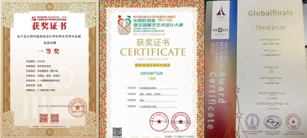 从最初的“竞赛小白”到能够独立统筹项目,李莉林也逐渐成长为团队核心人物。她加入工业设计协会,主导设计的“多功能墙面处理机”在中国好创意数字艺术设计大赛中荣获国赛二等奖。该产品瞄准工程扩建时的粉尘污染问题,致力于改善工人健康。此后,她和团队在米兰设计周国赛、全国大学生工业设计大赛等赛事中获得一等奖、铜奖等20项荣誉,其中包括2项国际奖项、6项国家奖项,充分展现出她卓越的创新设计能力。