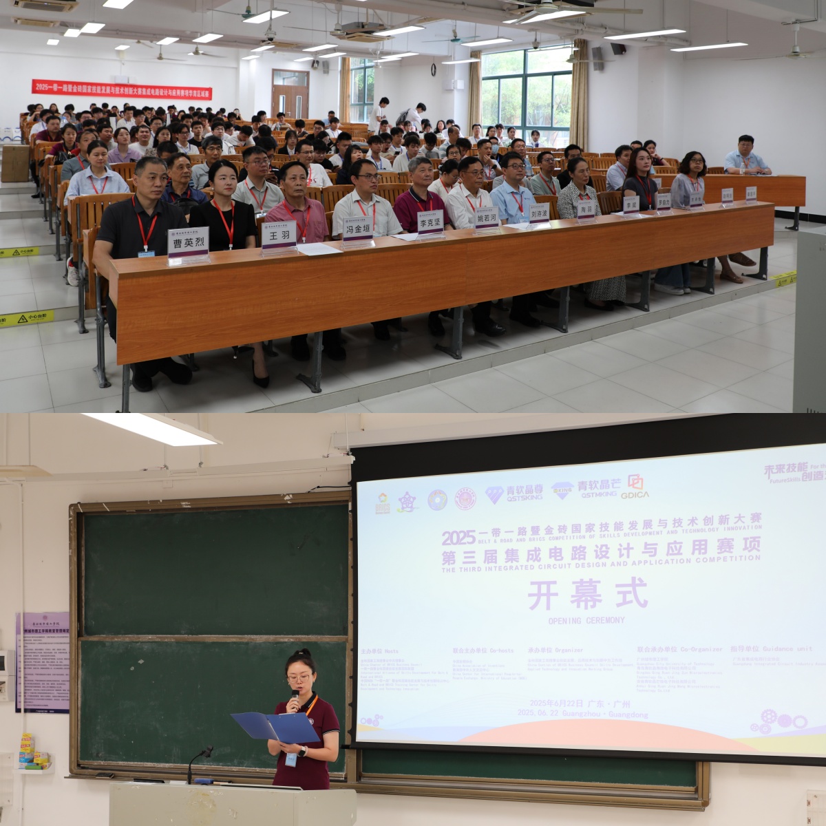 本网讯(记者 高歌)6月22日,2025“一带一路”暨金砖国家技能发展与技术创新大赛集成电路设计与应用赛项华南区域赛在我校举行。学校党委副书记、副校长刘洊波,大赛指导单位广东省集成电路行业协会代表方诗怡,大赛联合承办单位安徽青软晶芒微电子科技有限公司副总经理陶羽,以及学校电子信息工程学院/通信工程学院和校团委相关负责人出席了大赛开幕式。本届大赛由金砖国家工商理事会、“一带一路”暨金砖国家技能发展国际联盟、中国科协“一带一路”暨金砖国家技能发展与技术创新培训中心、中国发明协会、教育部中外人文交流中心等机构联合主办,金砖国家工商理事会(中方)技能发展工作组、产教融合型校企单位共同承办。本次大赛共吸引来自广东省、福建省、江西省等23所高校,共139支队伍同台竞技。