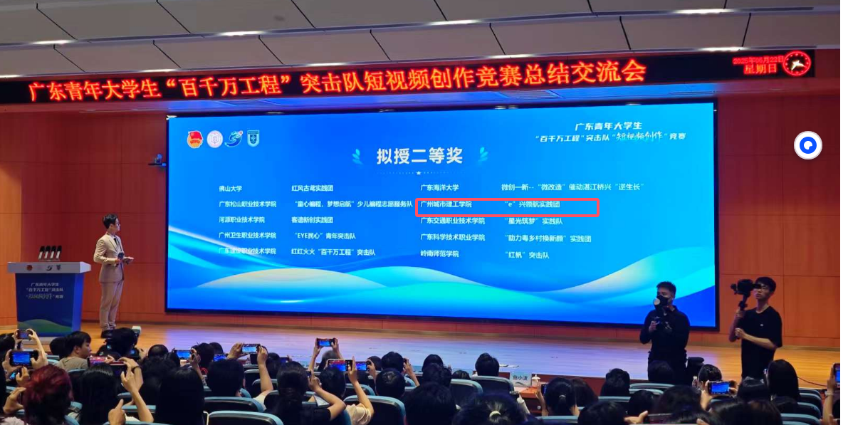 本网讯(记者 邹春梅 许智鹏)6月22日,广东青年大学生“百千万工程”突击队短视频创作竞赛总结交流会在广东财经大学(广州校区)正心堂举行。会上公布了拟获奖名单,我校马克思主义学院“Young实践团”创作的短视频《传承醒狮文化,锻造中华风骨》和计算机工程学院/大数据学院“e”兴领航实践团《凝青春力量,促乡村振兴》均荣获二等奖。