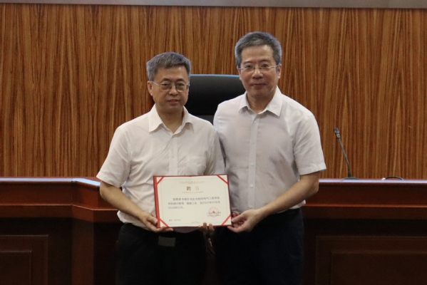 宣读聘任决定后,苏成上台为朱继忠颁发聘书及纪念品。聘任朱继忠院士为顾问教授是学校在学科建设和师资队伍发展上的重要举措,将为学校电气工程及其自动化、新能源科学与工程专业注入强大力量。