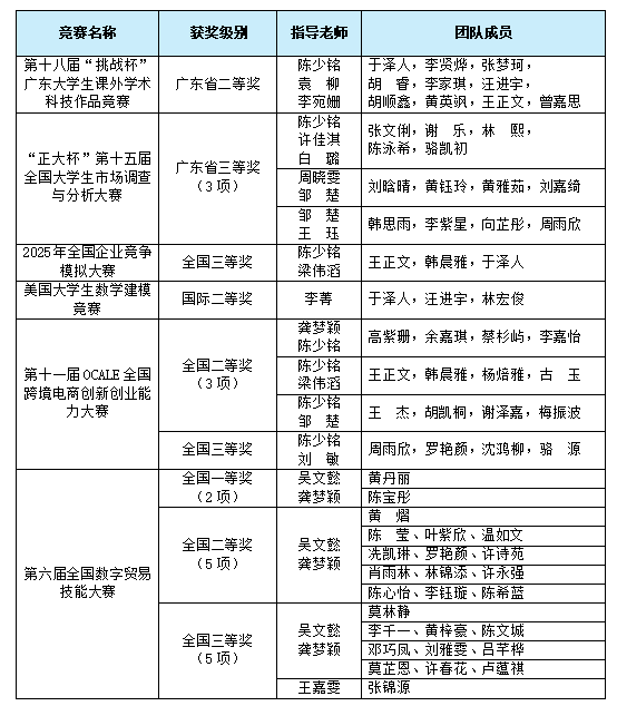参与全国企业竞争模拟大赛的王正文同学分享道:“这场商业模拟让我亲历了战略决策的复杂魅力。面对动态市场的数据分析、产能与成本的精准平衡,每一步决策都是对课堂理论的深刻检验和团队协作的实战演练。”参与OCALE全国跨境电商创新创业能力大赛的韩晨雅同学结合国贸专业学习深有感触:“比赛让我将国际贸易理论知识应用于跨境电商实战,特别是在数据分析和营销策略制定上,专业所学有了实实在在的落脚点。”指导老师邹楚观察到:“学生在解决真实商业问题的过程中,展现出更强的学习主动性和实践应用能力。这提醒我在日常教学中更多地引入实战案例,把竞赛中的典型场景设计成教学模块,实现赛教相长。”
