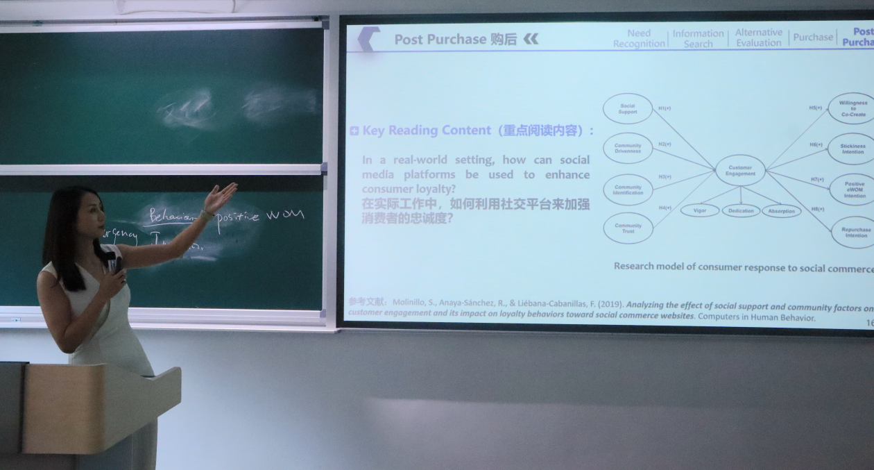 作为广东省高校教师教学创新大赛一等奖、广东省青年教师教学大赛一等奖获得者,龚梦颖在会上进行《营销学原理》课程的示范教学。她以“李宁品牌消费者决策过程”为案例,展示了“BOSS+PPL”融合教学模式:课前通过学习通发放预习任务,课中以小组讨论、广告方案设计等互动环节深化“消费者决策五阶段模型”,课后通过商业计划书分解任务链巩固知识。其课程设计紧扣“知识——能力——素质”三维目标,融入多个分层案例与思政元素,并采用多元评价体系,为在场教师提供了可借鉴的教学范式。
