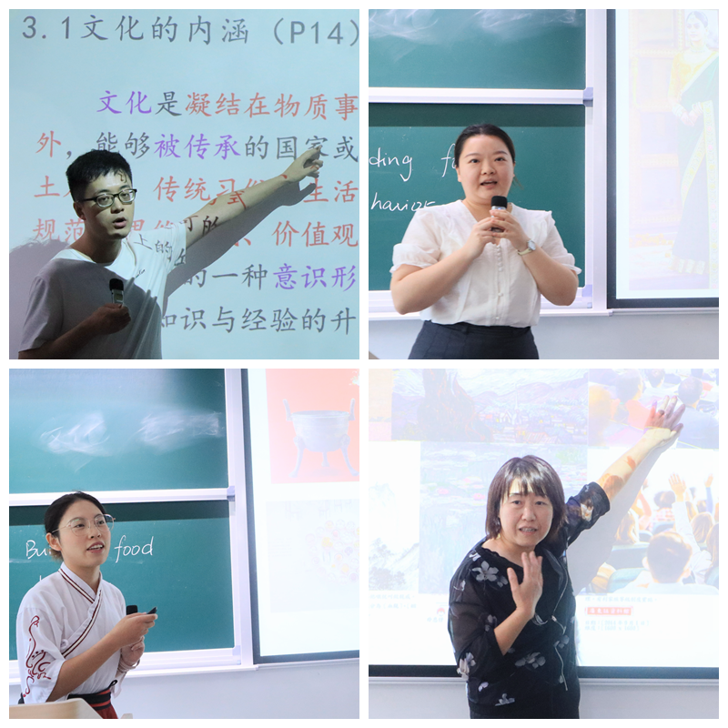 在院级课程打磨环节,国际商务综合教研室的陶思学、王蕴琪、王一旭、孟圆四位教师依次进行《中国商业文化》《跨文化商务沟通》等商科通识课程试讲,每人在12分钟内完成说课并进行课堂展示。安然、陈少铭及龚梦颖担任评委,从教学目标、案例设计、互动环节、时间把控等维度进行点评指导。