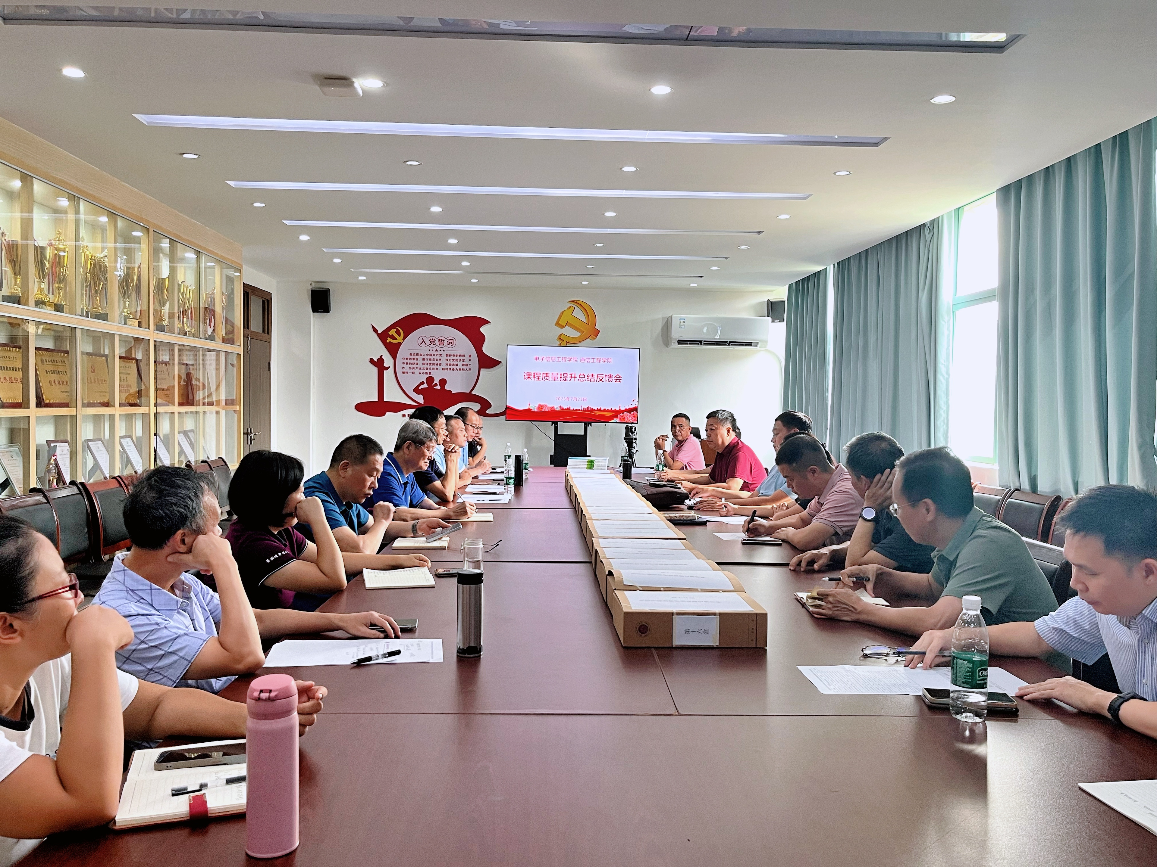 本网讯(记者 陈少玲)为切实提升教师课堂授课规范与教学实效,强化教学核心能力建设,7月22日至23日,电子信息工程学院/通信工程学院在B7教学楼,分三组开展课堂教学质量提升工程暑期专项活动。学院院长姚若河、副院长曹英烈、教学督导组全体成员及教师参加了活动。活动邀请了华南理工大学冯金垣和贺前华教授以及其他兄弟高校的专家共6人,组成校外专家团队,与学院督导分别组成三个评委小组,对教师课堂授课规范和过程材料进行针对性评审。