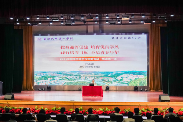 本网讯(记者 许晗星)9月18日,学校党委书记杜小明以“投身迎评促建 培育优良学风 践行培养目标 不负青春年华”为题,在学生活动中心为2025级各团支部支委和班级班委以上班团干部讲授2025年秋季学期“思政第一课”。