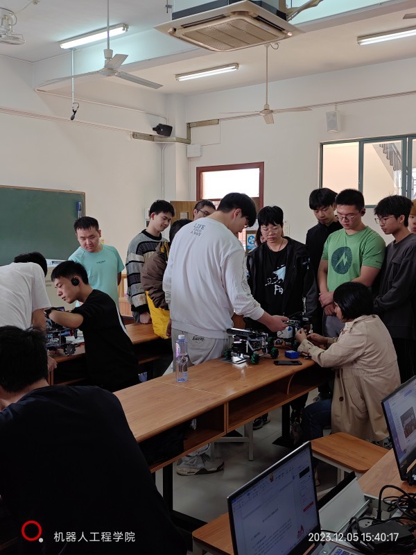 实物化教学——一、二年级以智能小车为实践载体,两人一组配备实验设备,将C语言、数据结构、电子电路等理论知识融入小车控制项目;三年级起转向复杂机器人系统开发,确保每位学生都能“看得见、摸得着、调得动”实际系统。